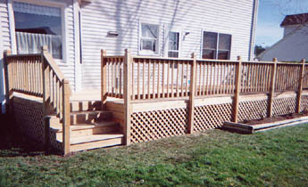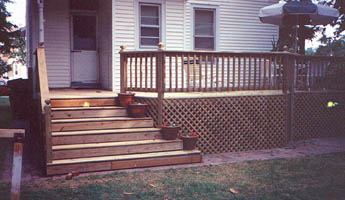 | Expansion of Existing Deck - decorative railings, heavy-duty lattice, inset steps (click on images to enlarge) |