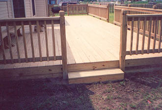 | Pressure treated decking, 6' wide steps, 1x4" enclosed deck skirting |